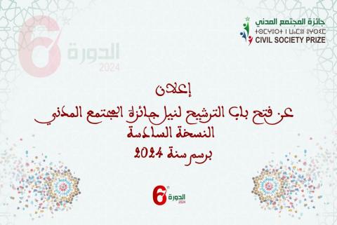 Le Ministère délégué auprès du Chef du Gouvernement, chargé des Relations avec le Parlement, annonce l'ouverture des candidatures pour la sixième édition du Prix de la Société Civile, au titre de l'année 2024.